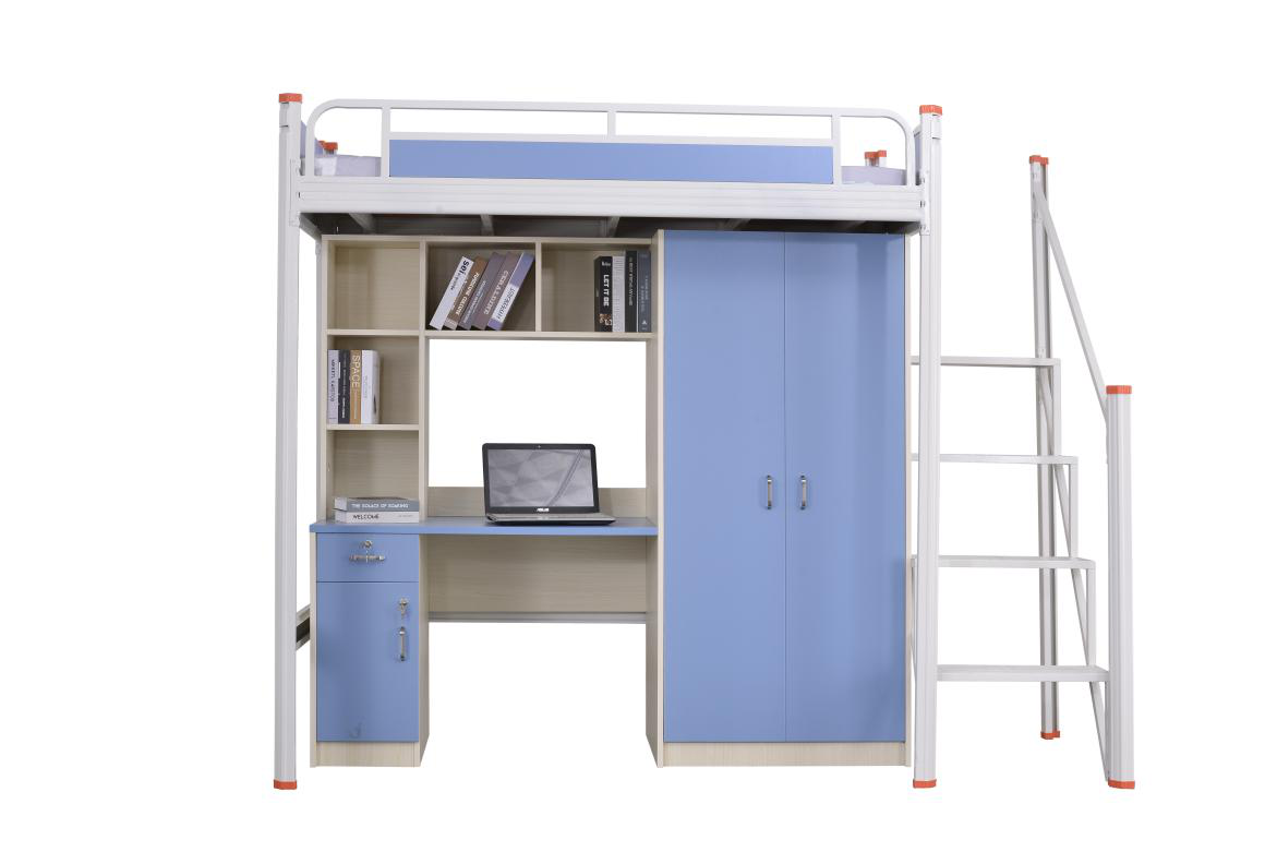 东莞振华家具学生宿舍组合床,采用优质的冷轧钢打造,立柱采用中空异型材,内外皆可酸洗磷化,不易生锈??凼搅唇痈永喂?,拆装方便。而我们的学生宿舍组合床由床、书桌、衣柜、书柜和梯子等组成,不仅大大的节省胃宿舍空间的利用,还使宿舍看起来更加整洁美观舒适。
