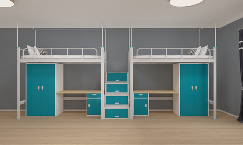 产品介绍:公寓床尺寸技术要求 一、铁床部份的材质:(规格W6380*970*H2080mm) 1 立柱:采用优质冷轧钢板经特制成型线轧制而成,其立面为中空异形(方便双面喷涂,不能用方管或圆管),立柱正面为斜边形设计,起到防撞作用,并有4条加强筋,立面成型后尺寸为78mm*78mm,材料厚度为1 2mm