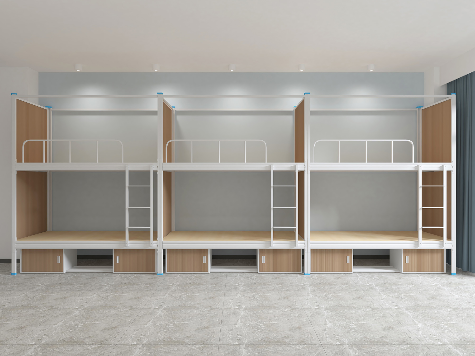 1.8、床支撑:采用尺寸为 20*30*0.9mm 优质方管制作,挂在长横梁里面,床板压住后无法取出来,避免取出当做暴力工具。